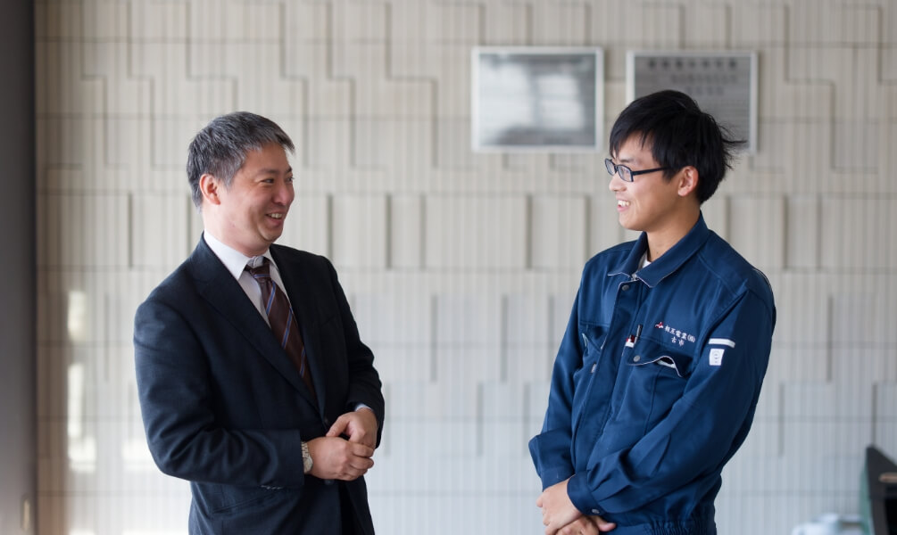 この経験から「何のために経営をするか」に対する答えを見つけ、「社員の人生を幸せにする」ことを目指しました。相互電業に戻ってからは、社員の待遇改善に注力し、社員が幸せになることを経営の目的としました。会社の経営理念「感謝」「挑戦」「成長」を通じて、社員が自分の人生をより良くする力を育て、地域から愛される人材の育成を目指しています。