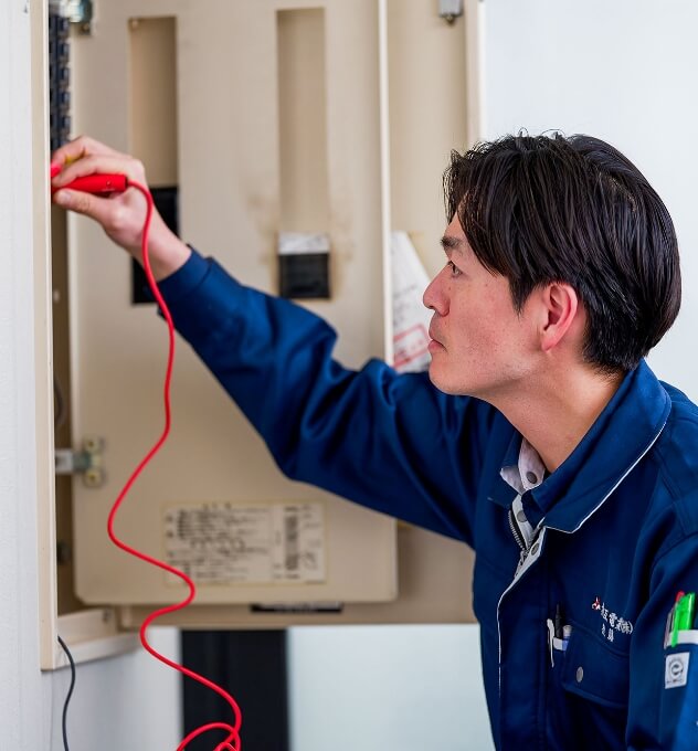 住宅や企業のオフィスを中心に、電気に関するあらゆるトラブルに対応しています。ご年配のお客様の電球交換から、企業での漏電調査まで、多岐にわたる業務を担当しています。
